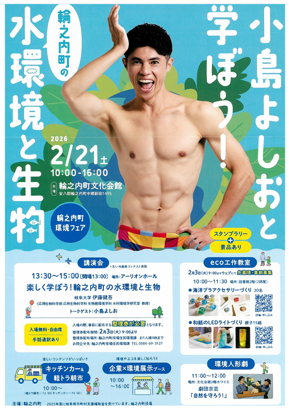 弊社子会社である、日本リファインが2月21日(土)に開催される岐阜県輪之内町主催の環境フェア『小島よしおと学ぼう!水環境と生物』に出展いたします。
